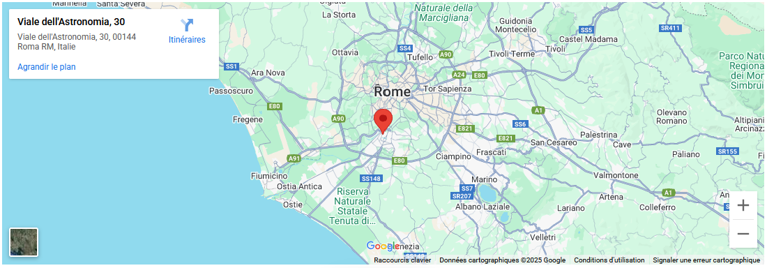 - From Leonardo da Vinci Fiumicino Airport (FCO): Leonardo Express train to Termini Railway Station (32 minutes), from there Metro Line B (direction Laurentina) until EUR Magliana.
